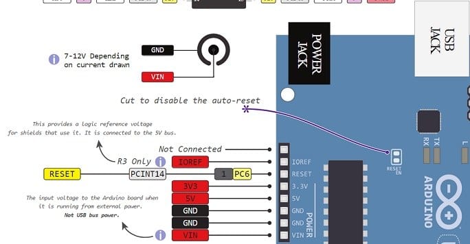 Además hay que decir que hay un diodo de protección de 1 amperio entre el positivo de la patilla del barril y la patilla VIN.